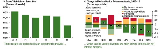 Se questo è lo scenario, si capisce perché il Fmi veda banche sostanzialmente costrette a inseguire i profitti perduti percorrendo il sentiero stretto di ulteriori riduzioni di costi operativi o provando a far crescere i ricavi puntando sulle commissioni.