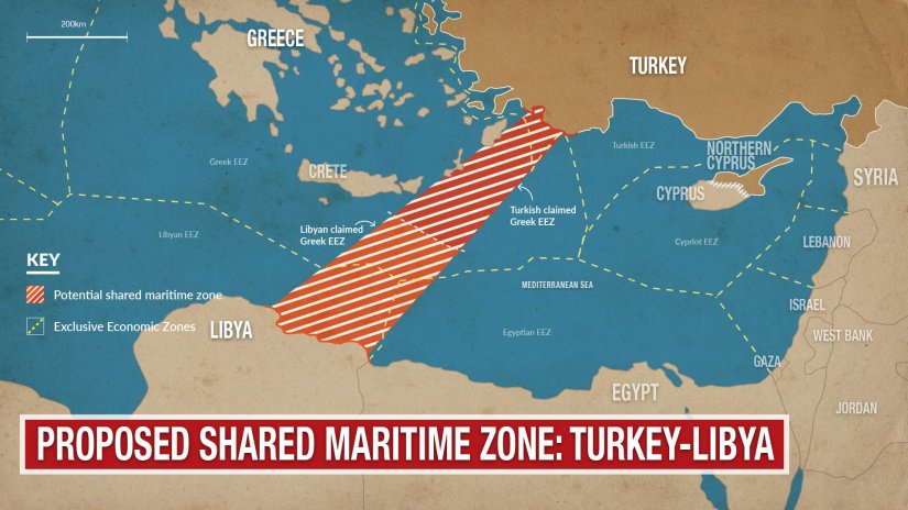 Nel caso della crisi libica, l’epicentro è ovviamente il Mediterraneo Orientale, dove la Turchia, ormai sempre più compresa nella interpretazione ottomana della sua storia contemporanea, ha giocato le sue carte con notevole spregiudicatezza, sorprendendo anche i tanti che pensavano che il paese non fosse pronto a usare le armi per sostenere il suo posizionamento nelle aree che giudica strategiche per il suo avvenire. E per capire quanto sia importante la Libia per la sicurezza della Turchia, basta ricordare che la costa meridionale turca si affaccia proprio sulla Cirenaica in mano ad Haftar. Non a caso pochi mesi fa la Turchia ha ipotizzato una propria zona economica esclusiva proprio con la Libia.