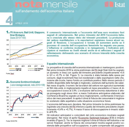 I risultati si stanno già vedendo. Oggi l’Istat ha rilasciato la sua nota mensile nella quale osserva che la crescita rallenta, come da copione.
