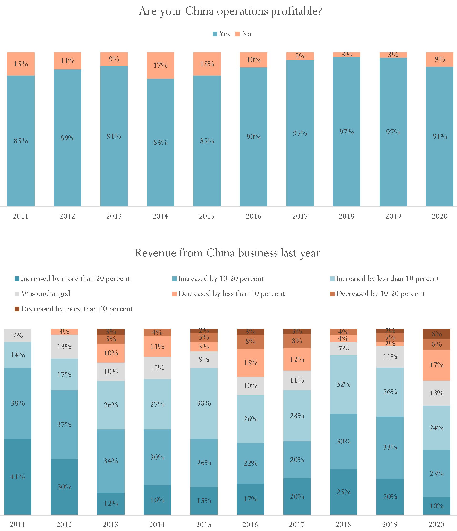 Lo lascia sospettare il fatto che il 24% del campione abbia risposto affermativamente alla domanda di aver pensato di ridurre gli investimenti pianificati in Cina l’anno scorso, proprio a causa (il 52%) delle tensioni con gli Usa, che hanno pesato sugli affari persino più del Covid.