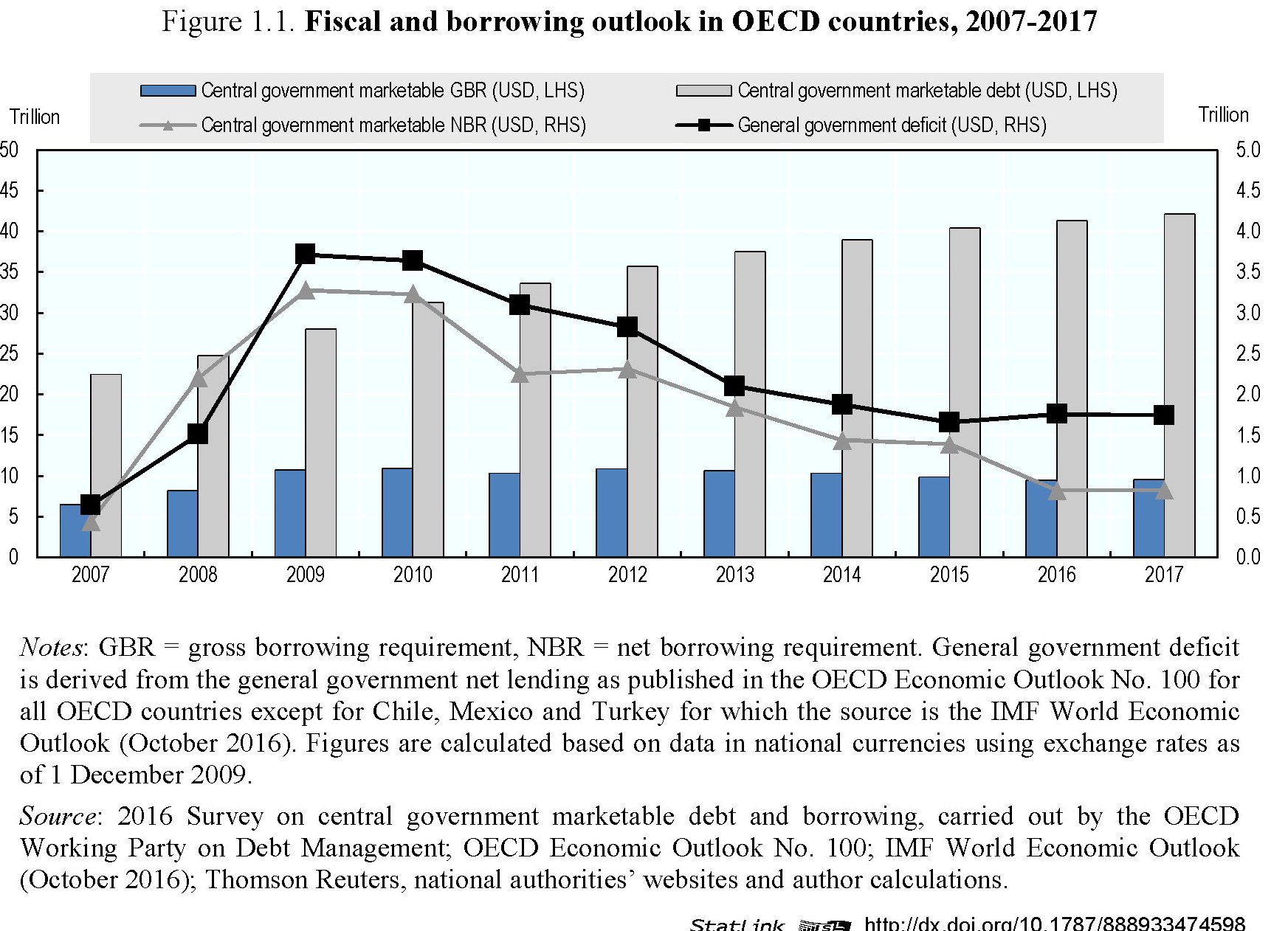 Notizia dal fronte del debito pubblico. Ocse ha pubblicato il suo outlook sull’andamento del debito sovrano, ossia il debito pubblico degli stati, relativo al 2017 con interessanti previsioni su quanto gli stati dovranno richiedere quest’anno e analisi su come ciò andrà a impattare non solo sul sistema finanziario globale, ma anche sui singoli stati. I dati generale mostrano una sostanziale stabilizzazione dei livelli di debito sovrano, dopo il picco di rialzi registrato fra il 2007 e il 2015, quando il debito pubblico globale sul pil schizzò dal 49,8 al 74,6% del pil. Si stima arriverà al 73% quest’anno, di sicuro favorito sia dal livello ancora basso dei tassi, ma che comunque rimane un livello storicamente elevato che nasconde profonde diversità fra i singoli paesi. Si calcola che circa 10 trilioni di debito pubblico siano remunerati a tassi negativi – sia dai processi di correzione che vari stati hanno messo in campo nel passato.