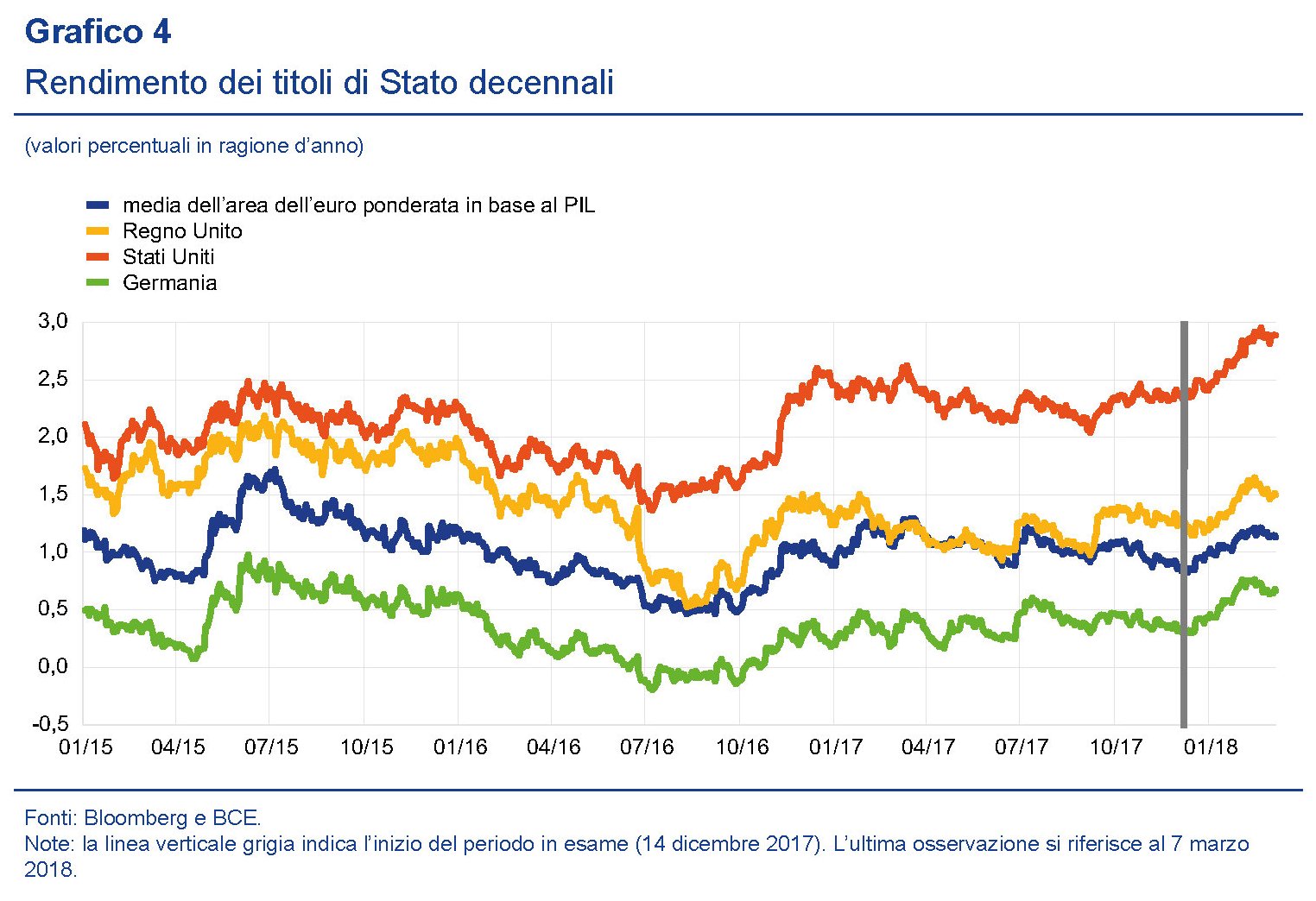Divergenza monetaria o trivergenza? La Bce ha pubblicato di recente il suo bollettino economico dove fra le altre cose mostra l’intonarsi dei rendimenti del decennale europeo, e in particolare quello tedesco, a quello statunitense. Circostanza strana solo che uno pensi che mentre la Fed ha da poco effettuato il suo ennesimo rialzo, la Bce ha ribadito che i tassi rimarranno fermi a lungo.