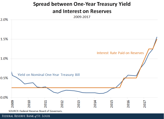 Senonché i banchieri si resero conto subito di avere un problema. “”È stato necessario pagare gli interessi su tali depositi al fine di evitare un’eccessiva crescita monetaria unicamente a seguito dell’iniezione temporanea di liquidità nel sistema bancario durante la crisi finanziaria”, come ha spiegato David Wheelock, della Fed di S. Louis. Prima di allora infatti la banca centrale pagava zero interessi sulle riserve bancarie, mentre da quel momento in poi questo asset ha iniziato ad essere remunerato.