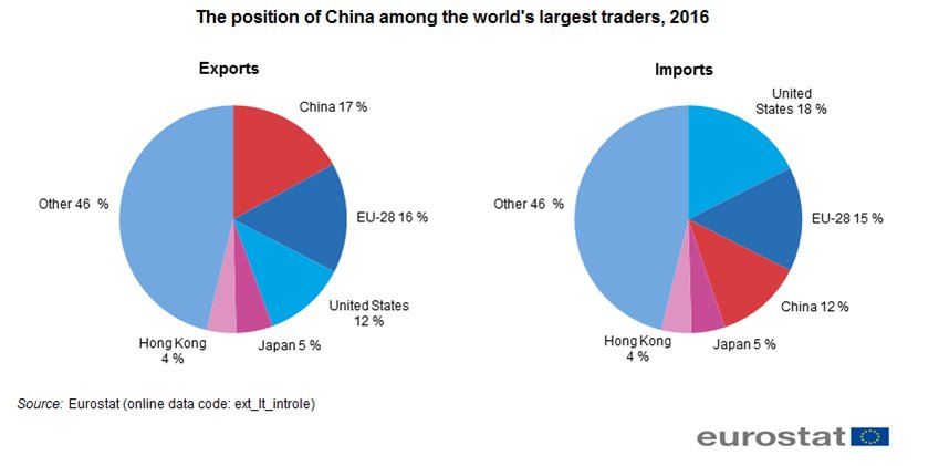 Un’occhiata al commercio internazionale. Eurostat ha pubblicato due grafici che letti insieme ci consentono di ricavare alcune informazioni molto utili sul commercio internazionale che spiegano anche molte delle tensioni per lo più alimentate dagli Stati Uniti. Cominciamo dalla posizione della Cina, che rimane la prima grande economia esportatrice mentre gli Usa sono i primi importatori.