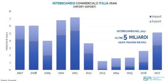 Il grafico mostra che l’Italia ha un interscambio commerciale notevolissimo con la repubblica islamica, ma non c’è solo questo.