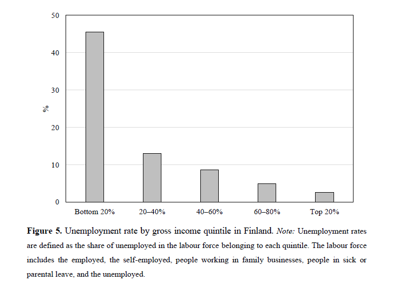 Gli studi più diffusi accreditano un ruolo rilevante nella distribuzione degli effetti espansivi sul versante di reddito e ricchezza alla crescita dell’occupazione, “che ha aumentato il reddito lordo del quintile più basso dei percettori”. dove peraltro si concentra il tasso più elevato di disoccupazione, come si può vedere dal grafico sotto.