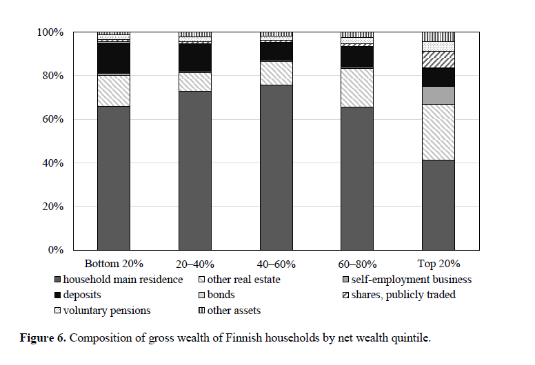 A ciò si aggiungano altri vantaggi distributivi derivanti dall’aumento del prezzo delle abitazioni che comunque hanno un peso rilevante nella composizione della ricchezza in tutti i quintili, ma in particolare in quelli più bassi.