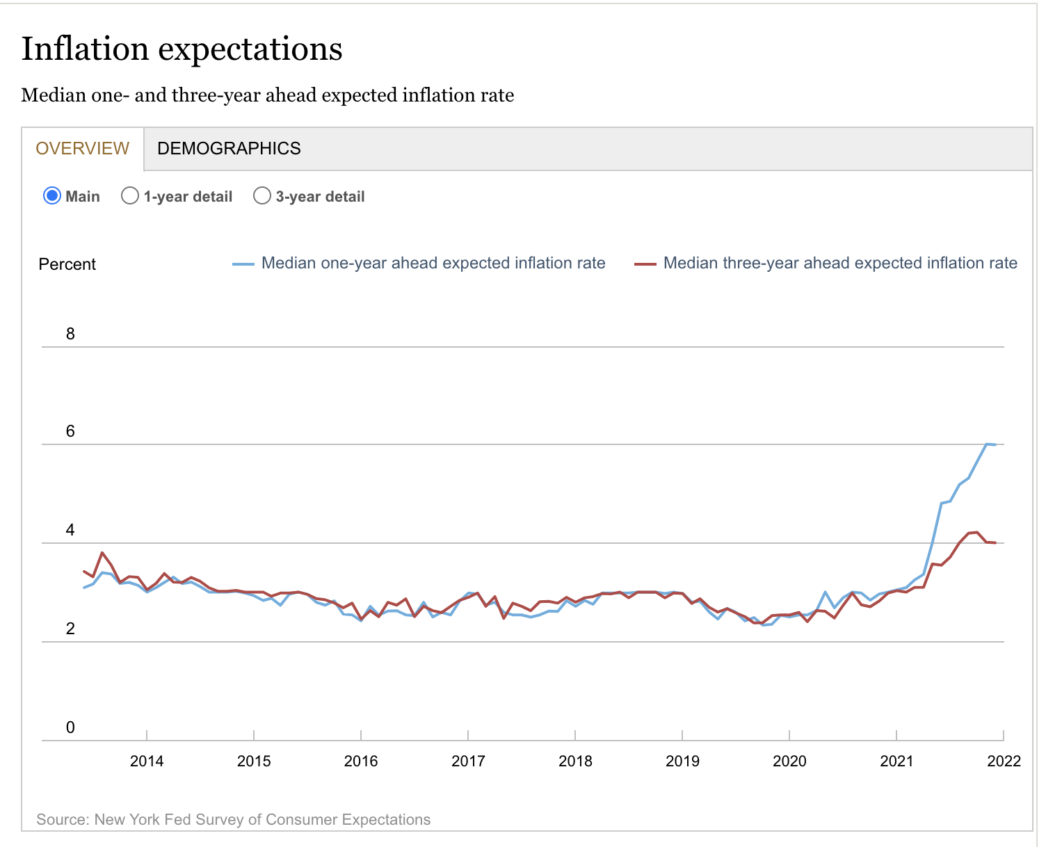 Il campione aggregato si aspetta prezzi in accelerazione del 6 per cento quest’anno, e del 4 per i prossimi tre. E questo spiega più che bene perché la Fed sembra intenzionata a dar corso ai rialzi di tassi: le aspettative di inflazione, ossia ciò che dovrebbe orientare le decisioni di politica della Banca, si sono evidentemente disancorate.