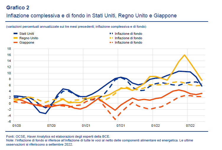 Gli elementi inflazionistici comuni alle due aree si sono riscontrati nel settore dei beni di consumo, con l’importante eccezione delle componenti volatili come abbigliamento, calzature e auto usate.