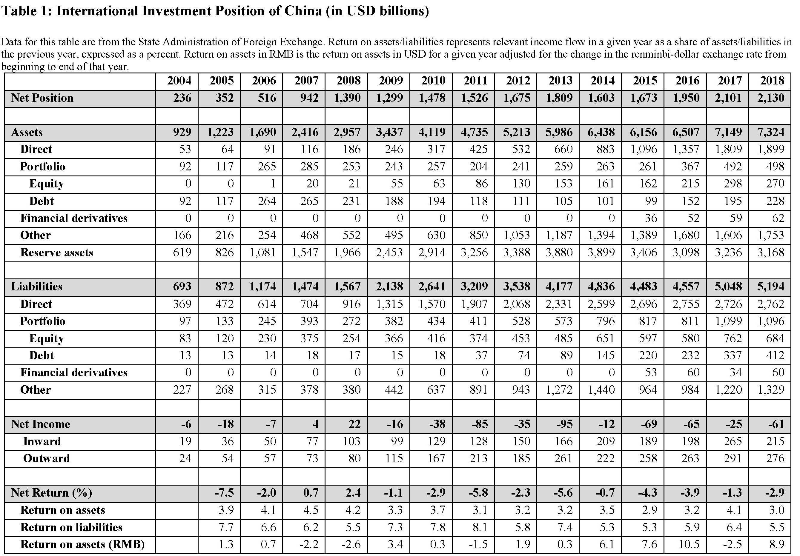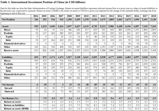 Poiché gli asset fruttano un rendimento e i debiti il pagamento di interessi, questa tabella ci consente di conoscere, oltre al saldo fra attività e passività globali, che è un indicatore della solidità economica di un paese, anche il saldo corrente che annualmente la Cina deriva dai suoi rapporti finanziari con l’estero. Quello che nel linguaggio della bilancia dei pagamenti si chiama saldo dei redditi.