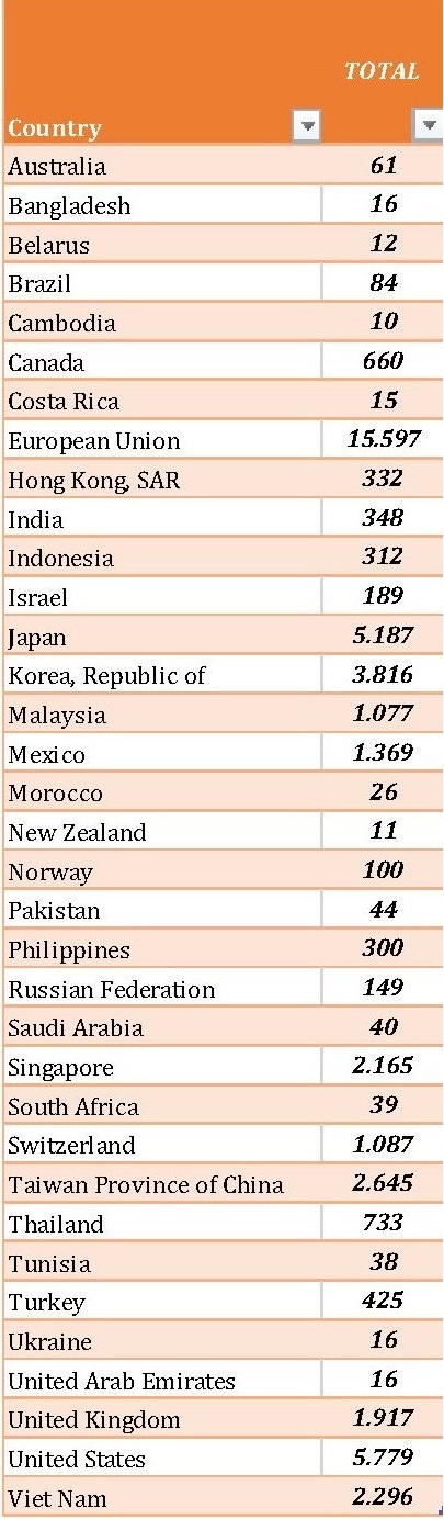 Poco meno di una catastrofe per il commercio globale. Il funzionamento a ranghi ridotti dei trasporti marittimi, e quindi dei porti, implica infatti il rallentamento del commercio tout court. Gli allarmi risuonano già da tempo. Ai primi di marzo l’UNCTAD (United Nations Conference On Trade And Developmet) ha rilasciato una preoccupante stima circa gli effetti dell’epidemia sul commercio globale, che possono essere agevolmente rappresentati dalla tabella sotto, che stima il costo in milioni di euro di un calo dell’export cinese del 2%. Come si può osservare, l’Unione Europea pagherebbe un costo molto elevato.