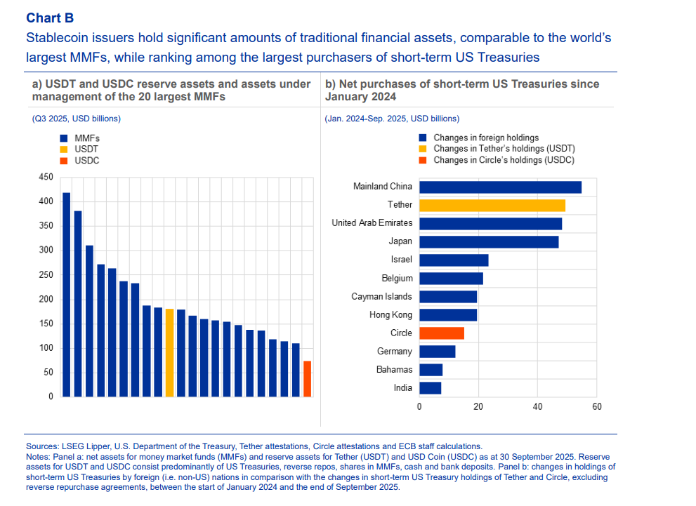 E’ ancora controversa l’opinione che questi strumenti siano utilizzati anche fuori dai circuiti cripto, in particolare per i pagamenti trasnfrontalieri. Ma il punto rilevante non è tanto questo. Il fatto che suscita apprensione è che il volume degli acquisti di titoli Usa, che come è noto sono un collaterale fondamentale delle transazioni finanziarie internazionali, abbia finito col dipendere così tanto da questi soggetti.