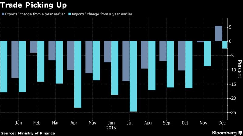 Per chiudere in bellezza questa lunga parentesi sul commercio estero, vi faccio notare che il Giappone, che dopo la Svizzera è il paese che ci porta più soldi, ha chiuso il 2016 con un attivo commerciale, come non gli capitava da una vita.