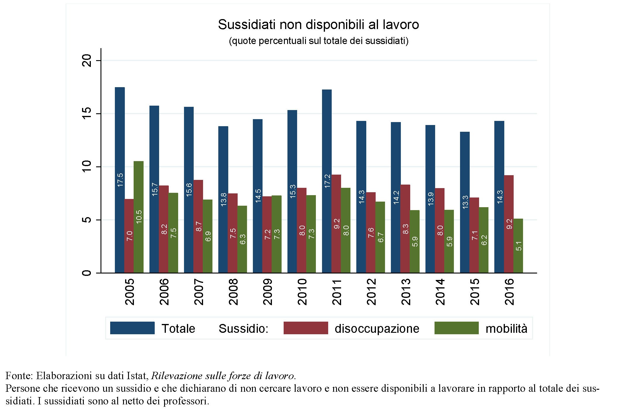 Bankitalia ha anche stimato la quota di sussidi che vanno a persone che non si attivano per la ricerca di un lavoro e che, nel 2016, valeva circa 1,7 miliardi di euro.