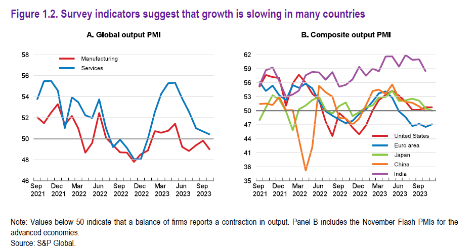 Questa tempesta perfetta ha iniziato visibilmente a schiarirsi l’anno scorso, quando la disinflazione è divenuta più robusta, sommandosi stavolta al ritiro degli stimoli l’aumentata produzione e una domanda mitigata dagli eccessi del 2022.