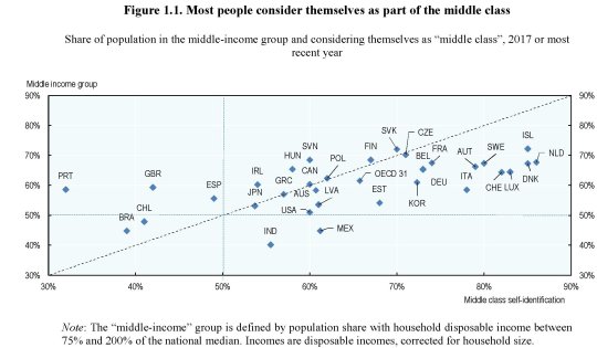 In realtà, come ogni termine che ha alle spalle un’elaborazione statistica, il termine ceto medio ha un significato preciso. Almeno per l’Ocse. E qualcuno potrà trovare singolare che magari il modo in cui l’istituto definisce gli appartenenti al ceto medio non corrisponda al suo modo di vedere la cosa. Ma questo è il bello dei luoghi comuni: sono fatti apposta per mettere d’accordo tutti anche quando significano cose diverse per ognuno.