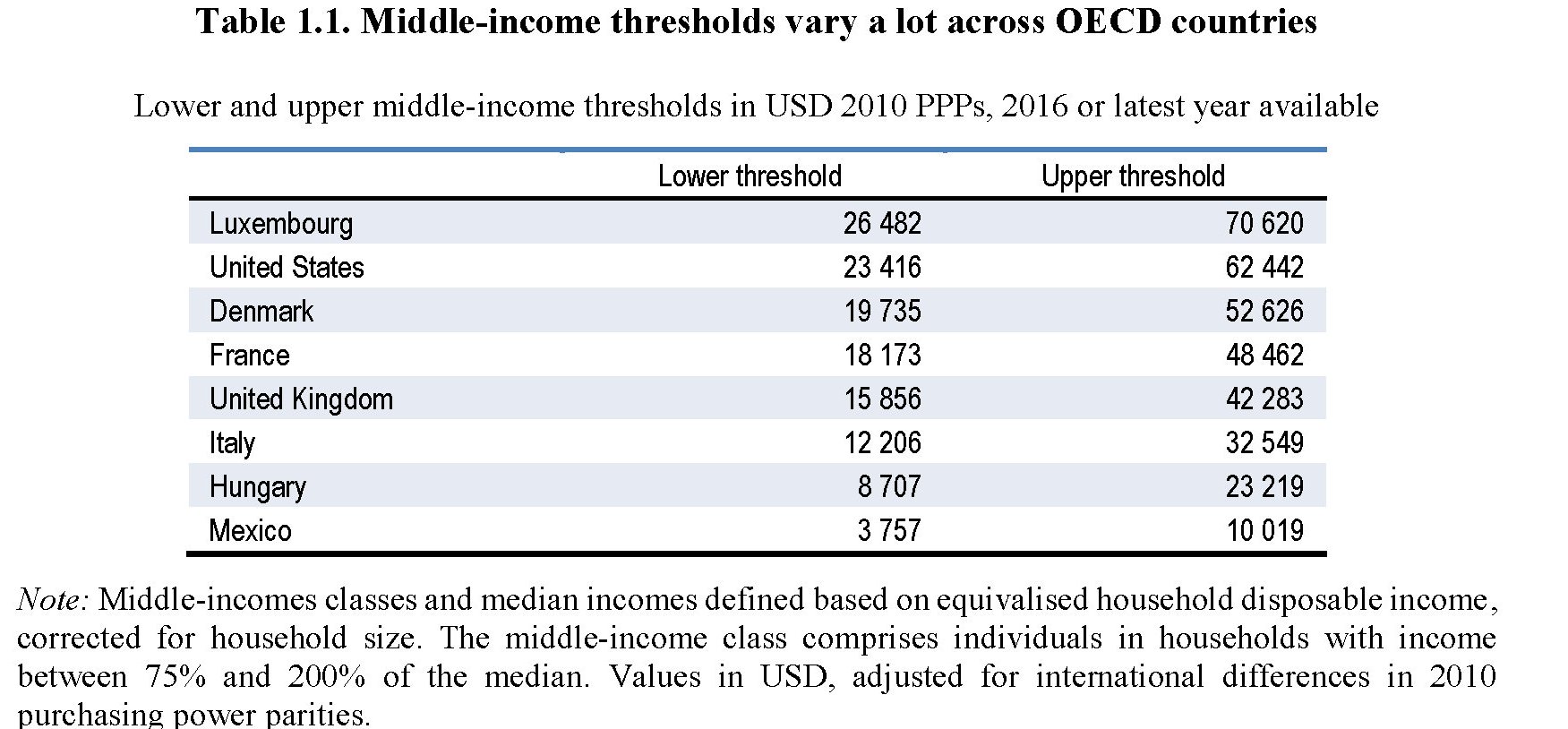 Ovviamente, come abbiamo già detto, la soglia qualificante per l’appartenenza al ceto medio vari a seconda del paese considerato. In Messico il range varia dai 3.800 ai 10.000 dollari annui, negli Usa fra i 26.500 e i 70.600.