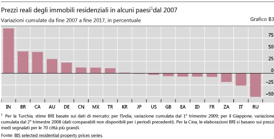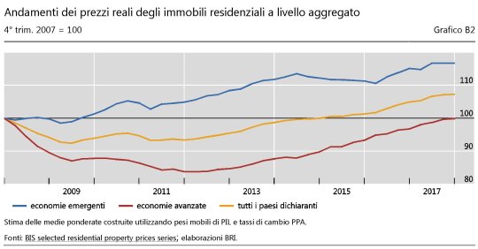 Se guardiamo a un periodo più lungo, si osserva che “i prezzi degli immobili continuano la loro lenta ripresa in tutto il mondo”. Dopo la crisi “i prezzi reali medi degli immobili residenziali nelle economie avanzate hanno toccato il minimo nel 2011-12. Dal 2012 hanno continuato ad aumentare e sono ora tornati sui livelli precedenti alla crisi”.