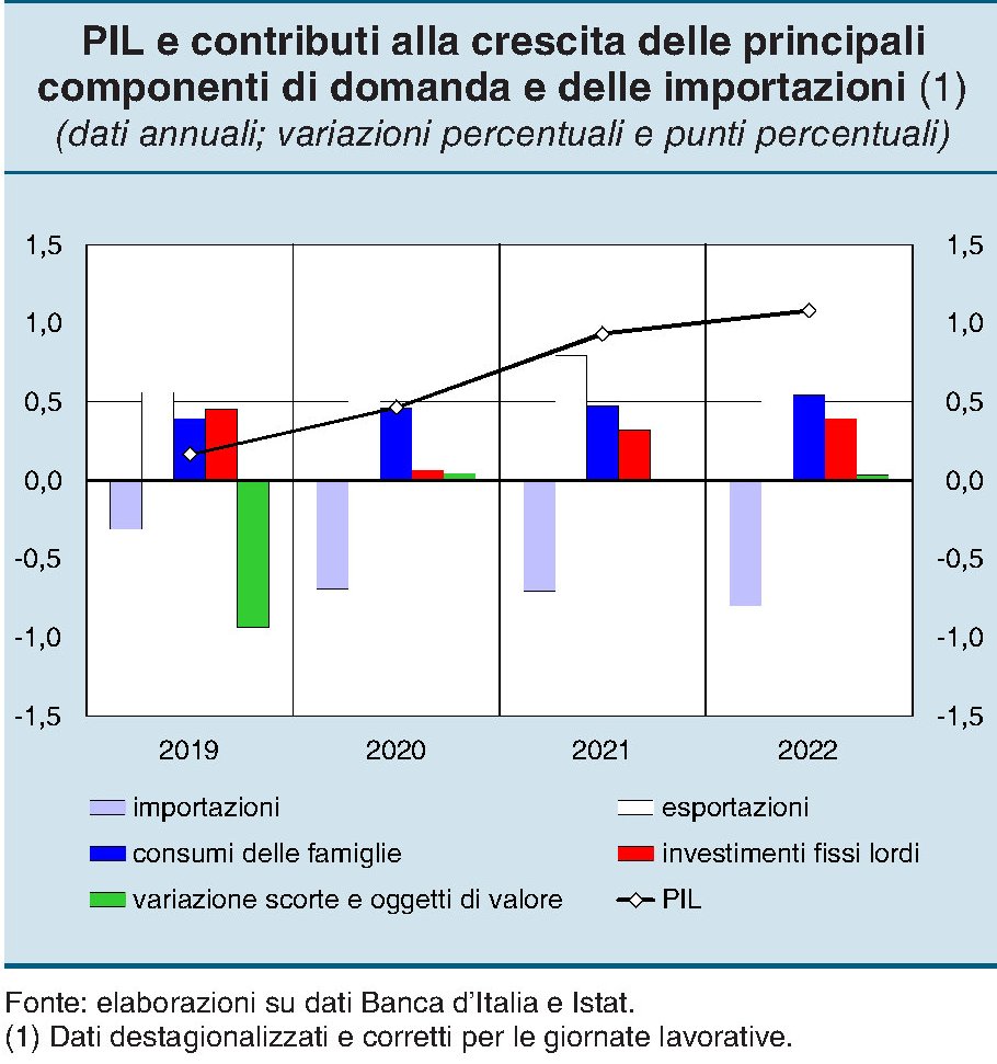 Veniamo al punto. I dati contenuti nell’ultimo bollettino economico di Bankitalia ci dicono che quel poco di crescita del 2019 è arrivato dalla domanda interna (spesa famiglie+investimenti fissi lordi) e dall’export.