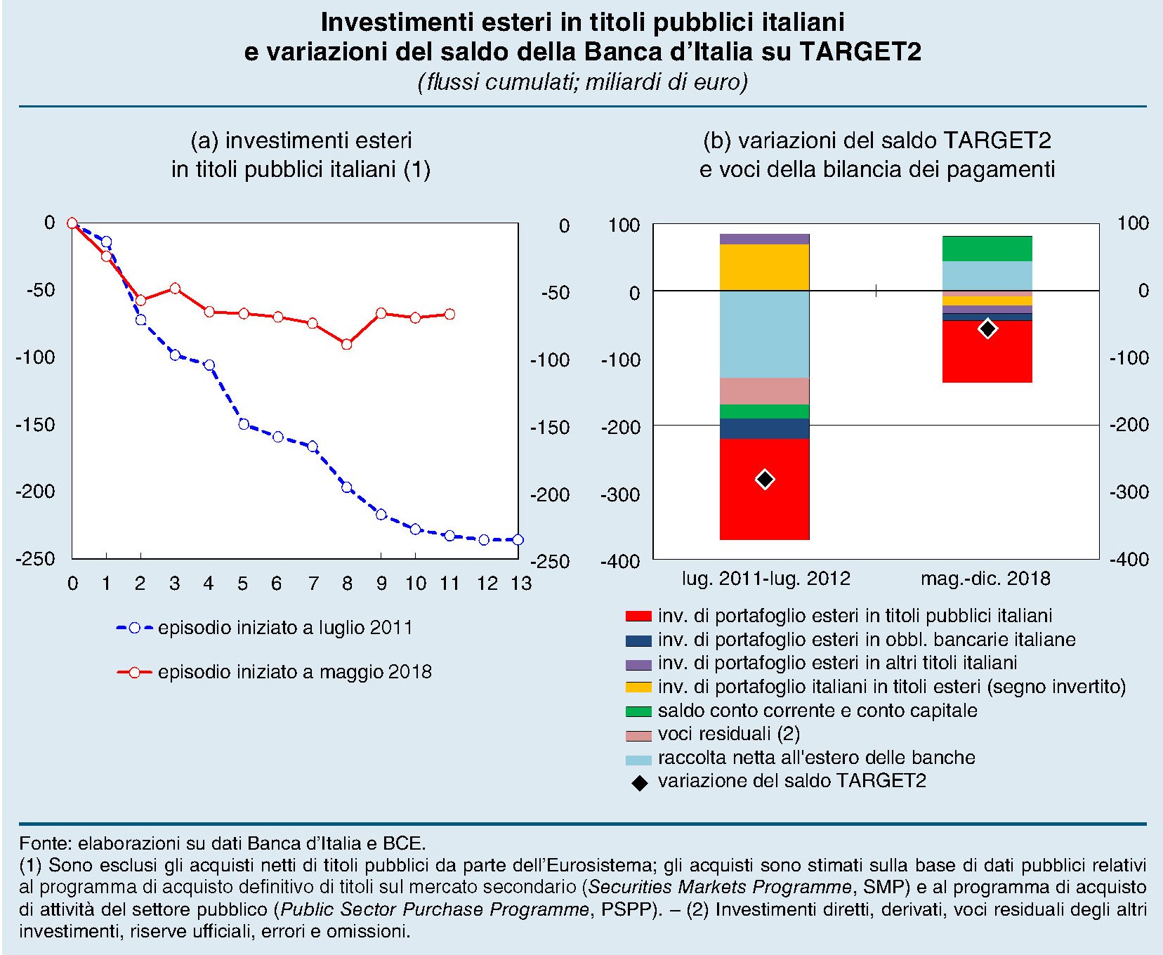 Le fughe di capitali si somigliano tutte, almeno all’inizio. E infatti l’episodio di maggio 2018, come lo chiama benignamente Bankitalia, ricalca, nel primi due mesi del suo svolgersi, la profondità e la virulenza del più devastante episodio iniziato a luglio 2011, che si concluse dopo oltre un anno e costò al sistema Italia un salasso di capitali notevolissimo. Basti ricordare che tutti i sottoscrittori di debito pubblico italiano, incluse banche e assicurazioni, vendettero titoli, in quell’episodio, arrivando a disfarsi del 32 per cento dello stock iniziale. Le banche italiane videro calare la propria raccolta sull’interbancario internazionale di 130 miliardi, il saldo Target 2, che misura i nostri scambi di valuta con l’estero, peggiorò di 286 miliardi. Diversamente, l’episodio di maggio 2018, dopo un paio di mesi nel corso dei quali i disinvestimenti dai titoli di stato italiani raggiunsero i 90 miliardi, ha trovato una parvenza di equilibrio, pure se al costo di uno spread più elevato, che peraltro non è neanche bastato a riportare in Italia tutti gli investitori esteri. Toccata di nuovo con mano la nostra fragilità finanziaria, i capitali stanno sull’uscio. Pronti alla fuga.