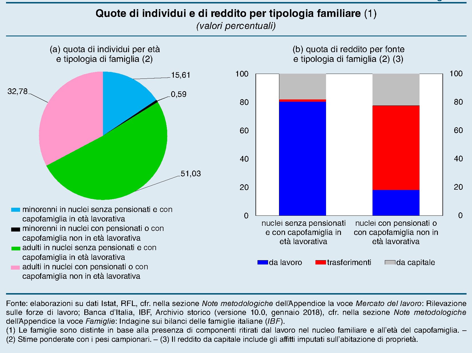 La prima informazione ce la sottolinea la stessa Banca. “Circa il 60 per cento delle famiglie italiane – comprendente il 70 per cento della popolazione e la quasi totalità dei minori – ha un capofamiglia in età lavorativa e non ha pensionati tra i suoi componenti”. Per queste famiglie “il reddito da lavoro rappresenta l’80 per cento delle risorse disponibili”.