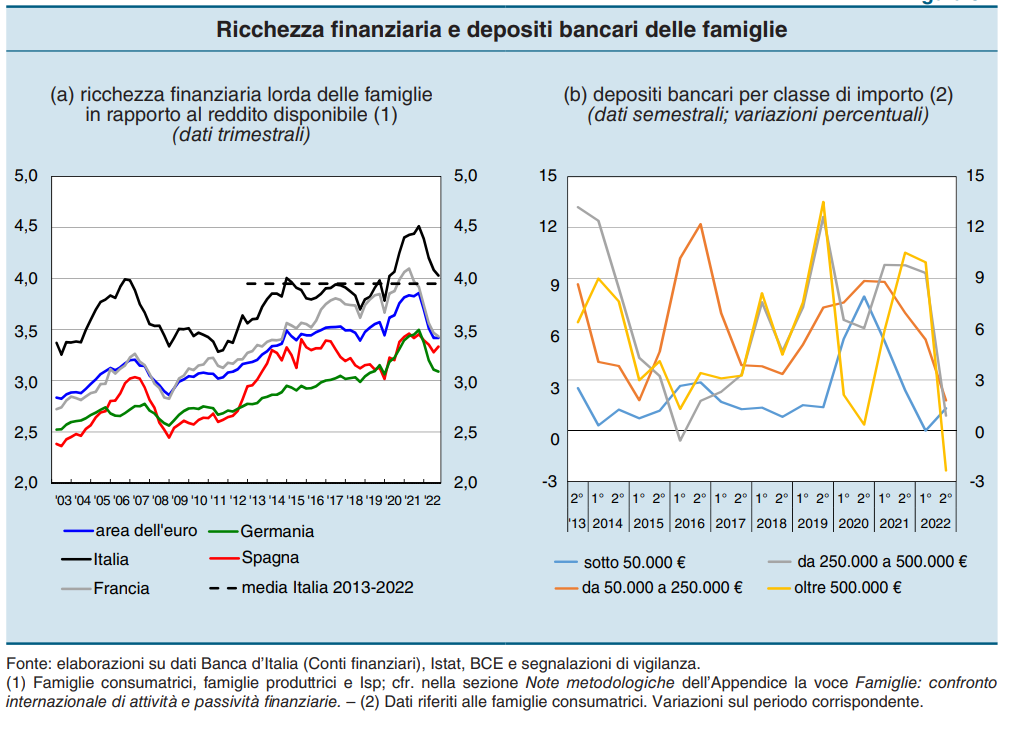 Non sorprende quindi tanto la circostanza che in Italia ci sia un livello molto elevato di risparmio che rimane nei depositi.