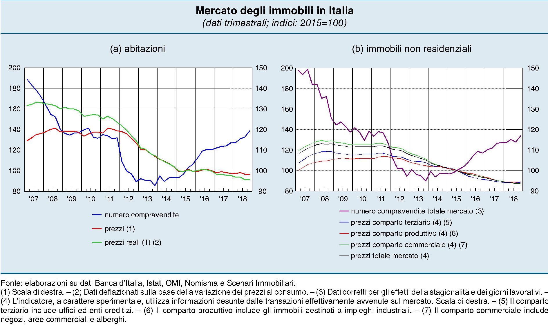 Il calo dei prezzi, che non accenna a terminare malgrado la ripresa in gran parte dell’eurozona, ha infatti notevolmente diminuito il valore del patrimonio abitativo delle famiglie che dal picco del 2011 ha perduto (a valori correnti) circa 400 miliardi.