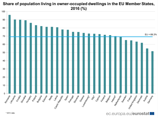 L’Europa dei piccoli proprietari di casa. Eurostat ha diffuso i dati sulla quantità dei cittadini che, nei diversi paesi, abitano in casa di proprietà. E i risultati sono alquanto sorprendenti.