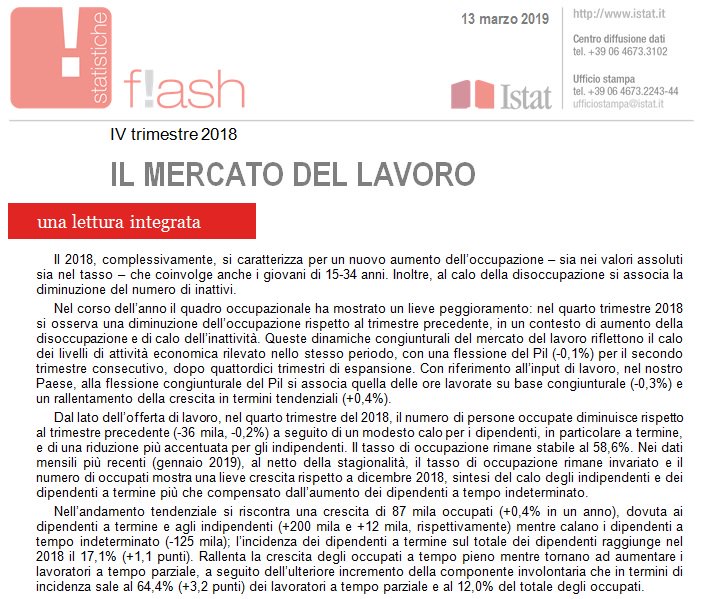 Ma siccome i commissari ancora può darsi che non siano conviti, è arrivata anche l’Istat, che ha fornito informazioni altrettanto importanti. La prima sugli andamenti del mercato del lavoro, che va benissimo altroché.