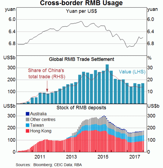 E’ chiaro però che questo processo è fortemente impedito dalla circostanza che la valuta cinese non è convertibile. Per questa ragione la banca centrale australiana, che all’internazionalizzazione del Renmimbi ha dedicato di recente un paper molto interessante, arriva alla conclusione che la valuta cinese ormai sia pronta a emergere come valuta di peso regionale e ovviamente “un maggiore uso del RMB a livello internazionale potrebbe accompagnare l’apertura del conto capitale e la riforma del mercato finanziario in Cina”. E proprio l’Australia sarebbe il primo paese anglofono a “attrarre anche un maggiore volume di flussi finanziari dalla Cina”. “Uno yuan più internazionalizzato dovrebbe assumere un ruolo più prominente nelle transazioni economiche e finanziarie australiane”, osserva la banca.