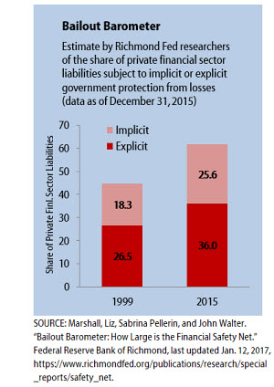 La Bad Bank degli Usa. Visto che si parla così tanto di banche, e il grande discorrere che si fa di bail in versus bail out, ho pensato vi facesse piacere sapere che il governo americano garantisce implicitamente o esplicitamente il 62% dei debiti del sistema finanziario statunitense.