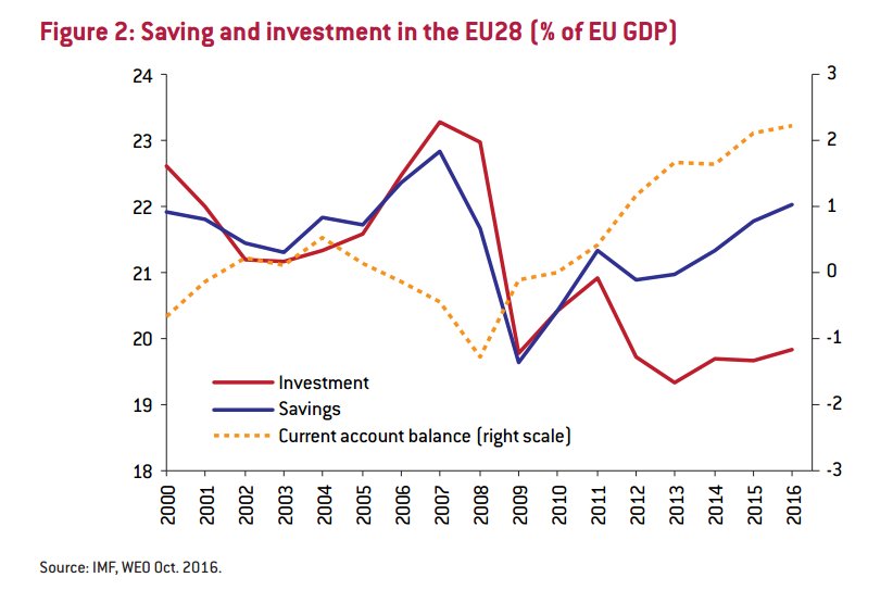 Dove vanno a finire i risparmi europei? L’Europa soffre di un notevole deficit di investimenti, che ancora non sono riusciti a recuperare in molti paesi compreso il nostro (siamo intorno al 70% di quanto non fossero) il livello pre crisi. E tuttavia, come mostra una interessante ricerca dell’Istituto Bruegel, l’Ue a 28 ha visto crescere notevolmente i risparmi dal 2009 in poi.