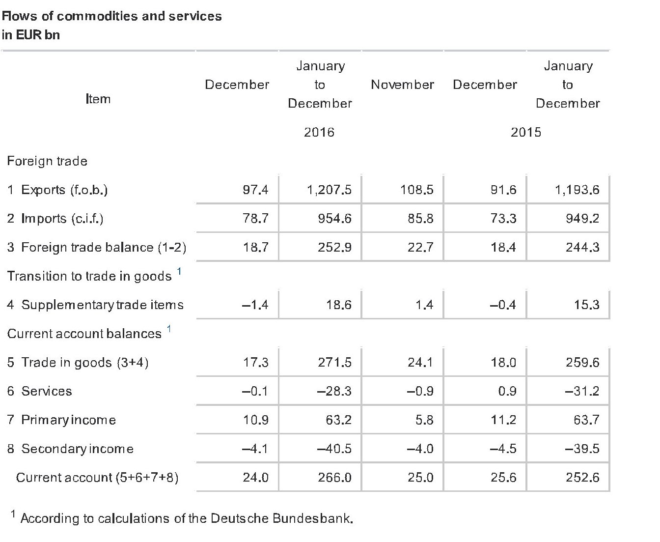 Le importazioni tedesche. L’istituto di statistica tedesco ha rilasciato gli ultimi dati del commercio della Germania, evidenziando il record storico dell’attivo commerciale del paese, arrivato a oltre 250 miliardi di dollari nel 2016. Tutti i giornali hanno osservato che mai la Germania aveva avuto un attivo così elevato. Ma questa suggestione ne nasconde un’altra che invece è bene conoscere per farsi un’idea più precisa del perché la buona salute del commercio tedesco riguardi tutti noi. Il fatto è semplice e si può osservare non guardando solo il saldo ma tutti i flussi commerciali della Germania.