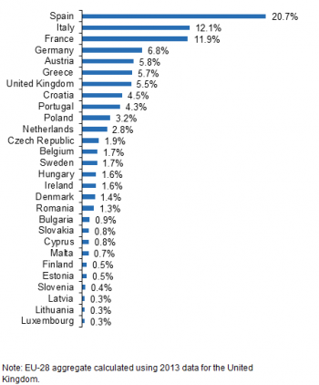 Come si vede dalla tabella, la destinazione più cara è la Danimarca, dove queste cose arrivano a costare il 50% in più rispetto al livello dei prezzi della Germania. Quella meno cara invece è la Bulgaria, dove si arriva a spendere fino al 56% in meno. Certo, gli importi non dicono nulla della qualità dei servizi offerti né tantomeno della bellezza dei territori. Però, al netto di tutto questo è interessante osservare che anche l’Italia risulta più cara della Germania, sempre in media. In ogni caso i prezzi spiegano molto del successo di una località. Eurostat ha classificato le destinazioni più gettonati dei turisti europei.