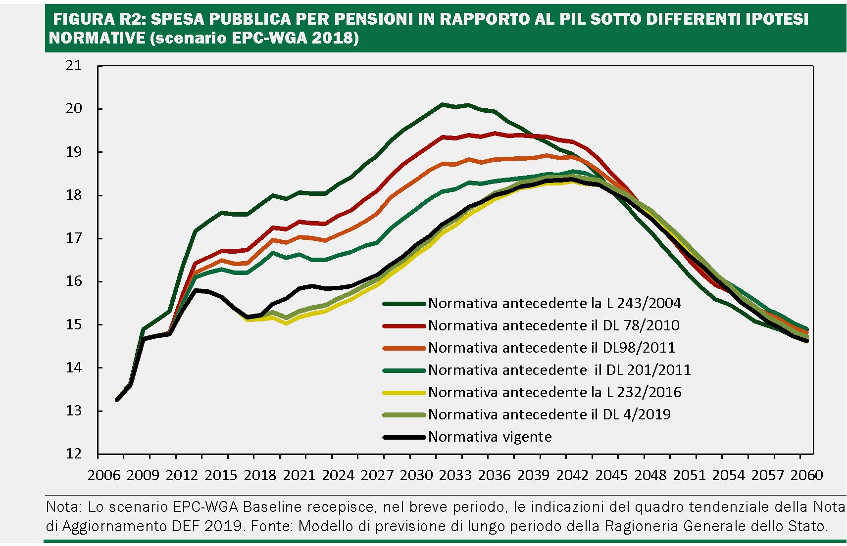 La pubblicazione della Nadef, aldilà delle previsioni e gli scenari che disegna, rimane sempre una delle letture consigliate a chi voglia capire qualcosa di più sul nostro paese. Fra le righe delle decine di pagine vergate ogni anno dal governo per disegnare le motivazione delle sue scelte politiche – che quindi vanno lette “politicamente” – si trovano anche delle informazioni utili. Ad esempio, sono molto interessanti quelle relative alla nostra spesa pensionistica, rivista al rialzo dopo quota 100.