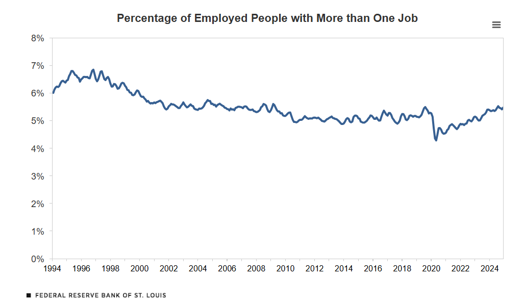 Gli economisti della Fed di S. Louis, che al tema hanno dedicato un interessante approfondimento la chiamano sovraccupazione. Parliamo di persone negli Usa che lavorano più ora di quanto prevedano i normali orari, magari svolgendo più di un lavoro.