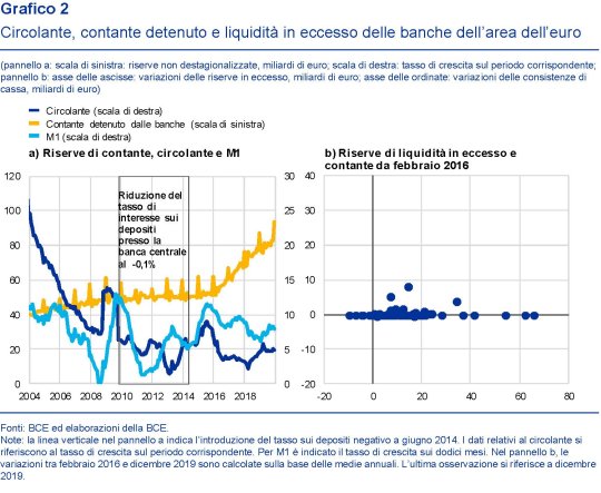 Questa circostanza ha a che fare con l’uso del cash: “Le banconote forniscono un rendimento nominale pari a zero, pertanto, se i depositi presentano tassi di interesse nominali negativi, i depositanti possono, a un certo punto, cercare di evitarli ricorrendo all’accumulo di contante”.