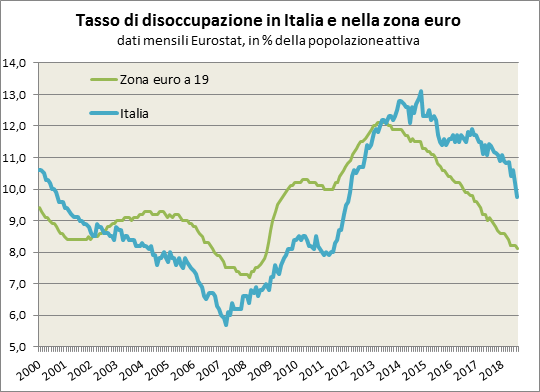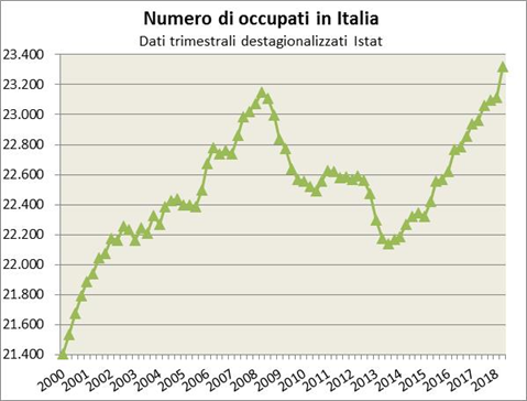 Quindi in Italia fino a tutto il 2007 la disoccupazione è scesa e l’occupazione aumentata.
