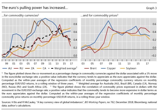 Questa influenza è stata osservata anche nel caso delle valute dei paesi esportatori di commodity, che, da quando l’euro è in circolazione, sembrano bene intonate con l’euro. “Non mi riferisco – spiega Borio – al peg col dollaro dei paesi medio-orientali produttori di petrolio, ma alle valute di altri produttori come Australia, Brasile, Canada, Russia e Sud Africa”.