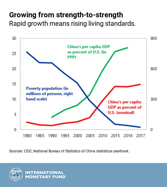 Notate l’impennata del pil pro capite da inizio 2000, quando i cinesi entrarono nel WTO, ossia nel commercio globale. Altresì che la diminuzione dei poveri andava avanti già da quasi tre decenni.