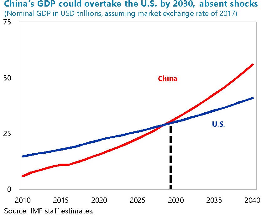 Ora non ci sarebbe alcun bisogno di ricordare questo epico scontro culturale se intanto all’orizzonte del potere globale non si avvedesse il prepotente sorgere della Cina, che secondo alcune stime pubblicate nell’ultimo staff report del Fmi, dal 2030 supererà la produzione Usa divenendo di fatto la prima economia del mondo.